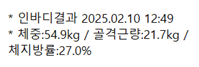 오히려 체중이 2kg 찌는 바람에 체지방률이 거의 2% 상승 ㅠㅠ